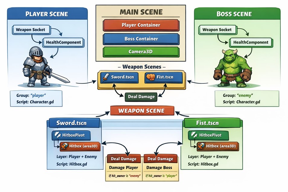 - ChatGPT:tä on käytetty Godot 4 pelimoottorin käytön opastamisessa ja GDScript-koodin luonnissa sekä muokkaamisessa. Myös peliohjelman arkkitehtuurin suunnittelussa tekoälystä on havaittu olevan merkittävää hyötyä. Esimerkkeinä kuvaajat.